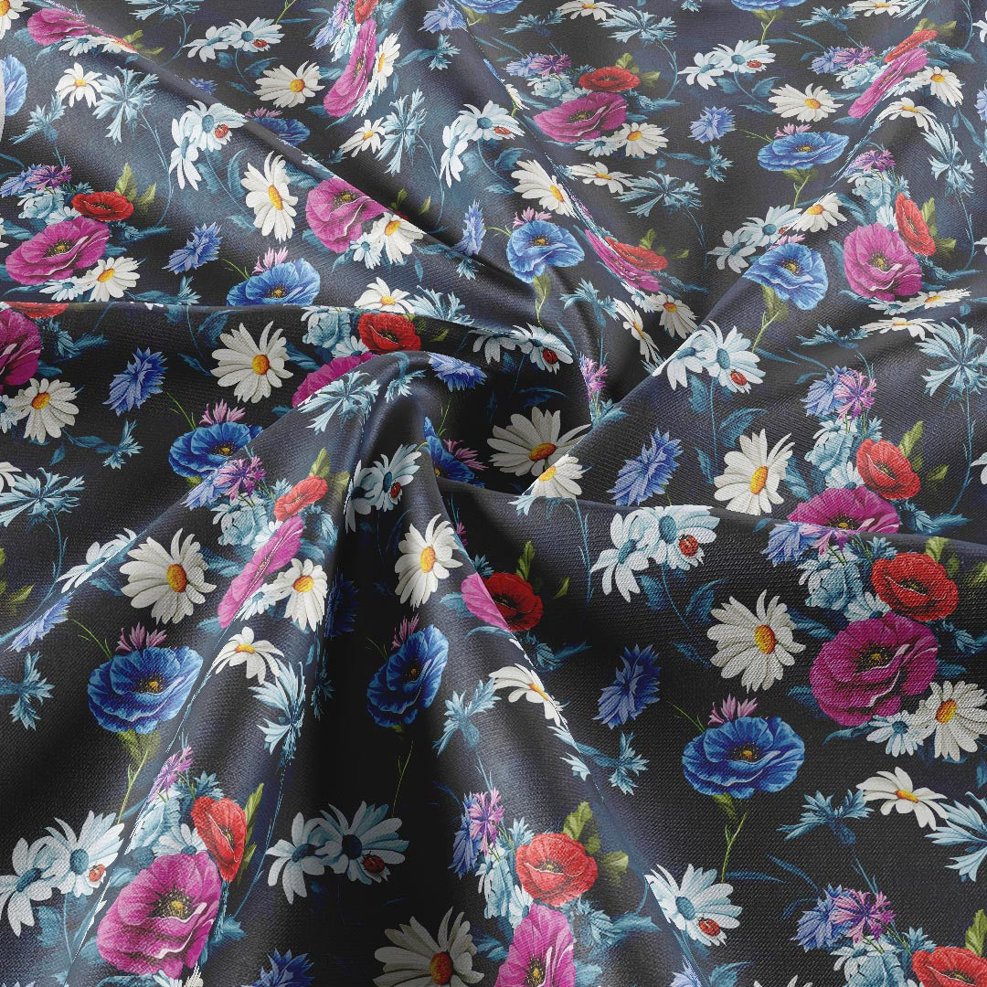 Midnight Daisy - Raw Silk Mate 52" Width