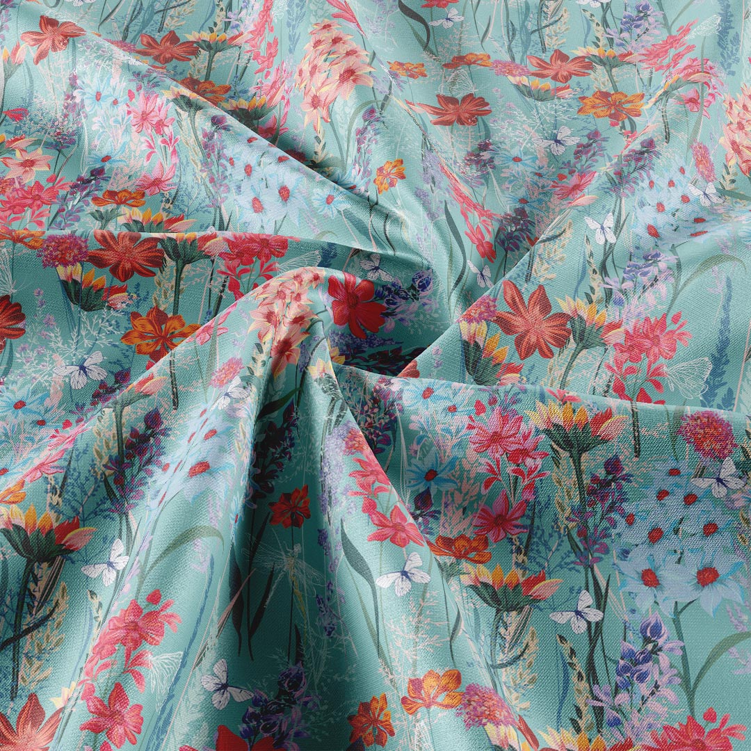 Mint Garden Panorama - Raw Silk Mate 52" Width