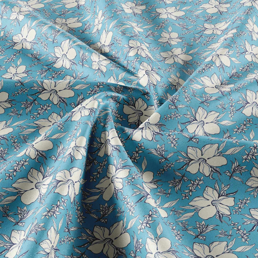 Azure Hibiscus Sketch - Raw Silk Mate 52" Width