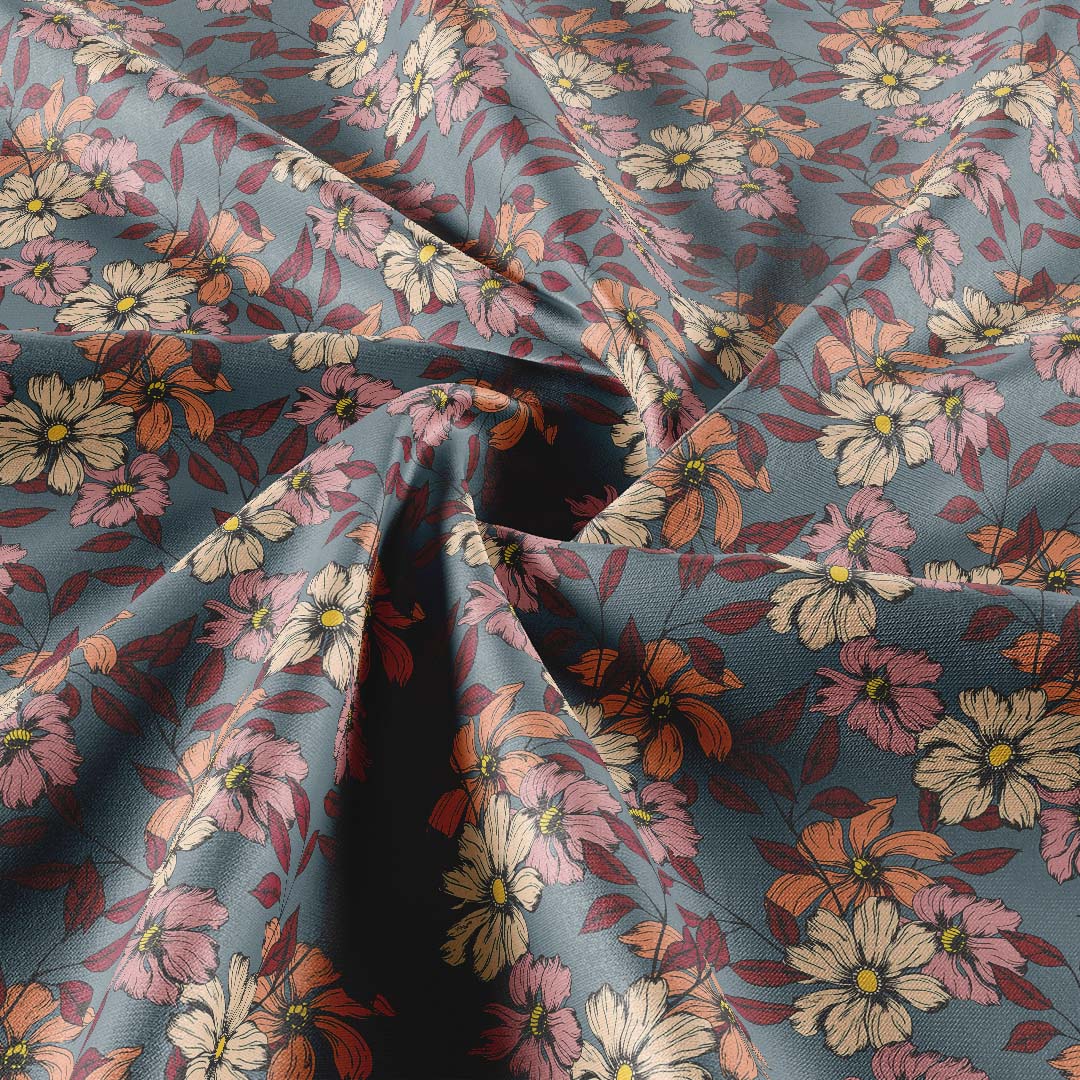 Cosmos on Steel - Raw Silk Mate 52" Width