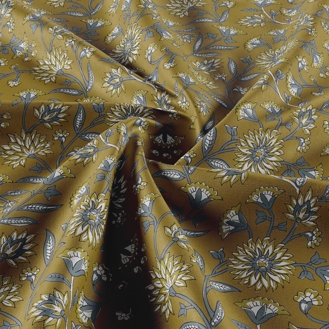 Heritage Floral - Mustard - Raw Silk Mate 52" Width